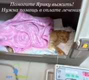 Казалось бы, всё у Ярика складывается хорошо, осталось найти только постоянного хозяина. Но жизнь внесла свои коррективы. Котик заболел. Появились сопли, чихание, правый глаз покраснел и помутнел. Все признаки указывали на инфекцию, которую планировали вылечить дней за 10. Поскольку Ярик забияка ещё тот и спуску не давал другим котам, решили, что глаз был поврежден при очередном выяснении отношений с собратьями. Начали лечение. Но по прошествии нескольких дней, когда вроде бы должно было наступить улучшение, Ярику становилось хуже. Он практически перестал кушать, старался спрятаться в укромные уголки. Сдали анализы, сделали УЗИ - и нам диагностировали ФИП((( Ещё год назад это был смертельный приговор для животного, но сейчас эту болезнь можно победить! Но это очень долгое лечение, а главное - очень дорогое!!! Но мы с Яриком настроены на борьбу за жизнь и очень-очень просим нас поддержать!!! |